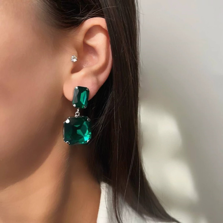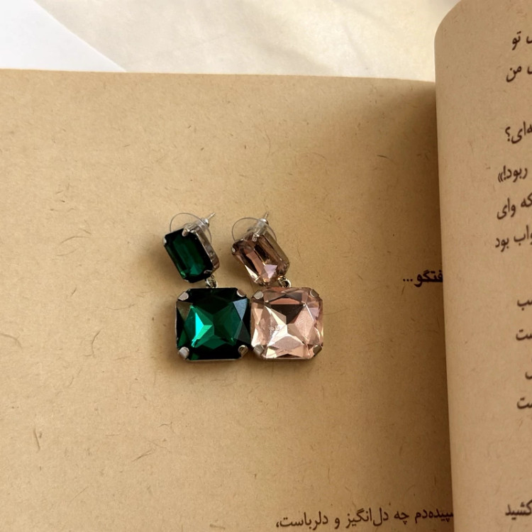 گوشواره جواهری مربعی ضد حساسیت کیفیت بسیار عالی رنگ ثابت